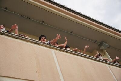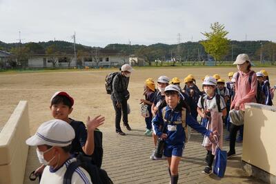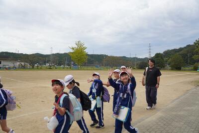 ちょうど3年生が出発する時に、5年生がベランダに出て手を振ってくれました。(もちろん担任の許可で)