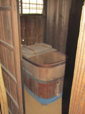 この施設は、先人の生活の知恵や工夫・風習・技術などを将来に伝えていくことを目的として平成11年に設立されたもので、いわき市内に残っていた茅葺きの古民家を移築し、建築当初の状態を復元しているそうです。