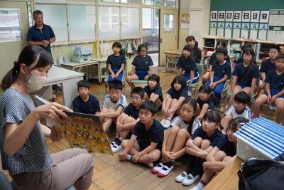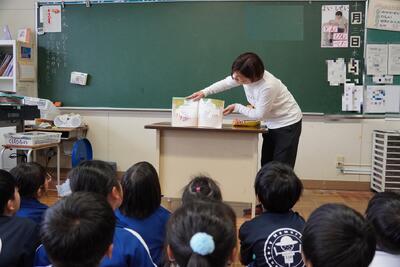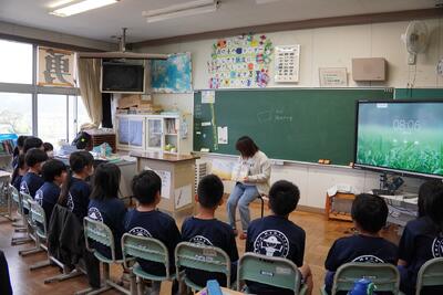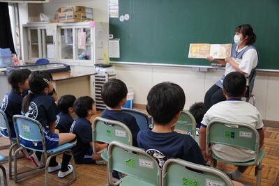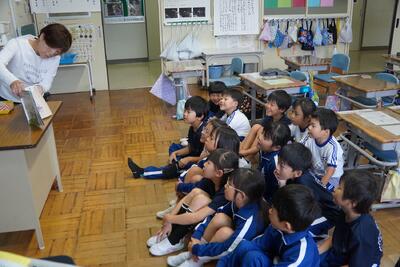 今日の朝の時間は、ボランティアとしてご協力いただいている保護者の方と学校司書の先生による読み聞かせを行いました。