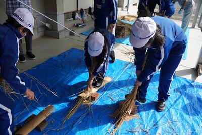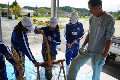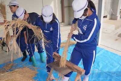 【6年の歴史の授業で登場する「千歯扱き」に挑戦します。】
