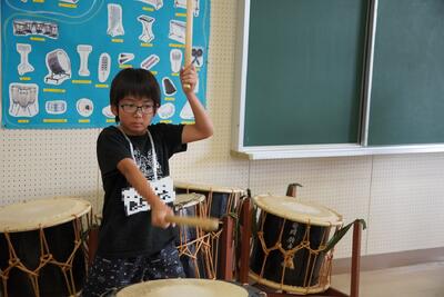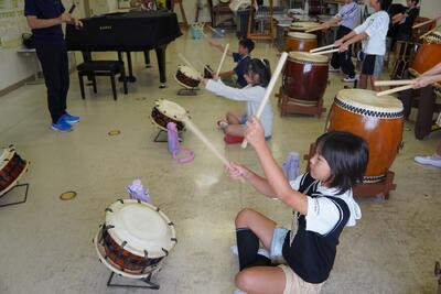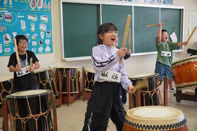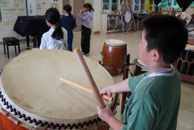 3日(金)の6校時、特別非常勤講師の先生にご来校いただき、和太鼓の練習を行いました。