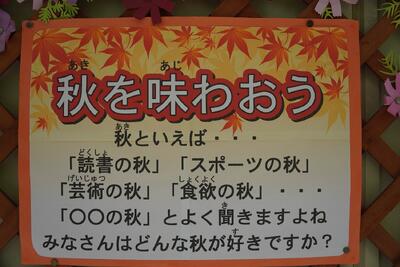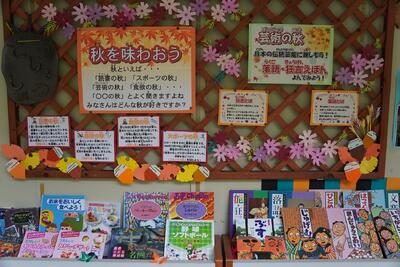 夏模様だった図書室も模様替え、すっかり秋になりました。