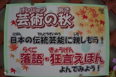 その中で「芸術の秋」はさらにピックアップし、狂言や落語など、日本の伝統芸能に係る本を集めていました。