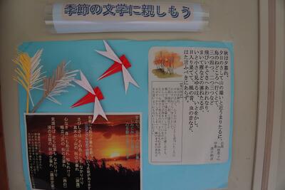 枕草子の秋の部分と、秋に関する短歌を掲示しました。