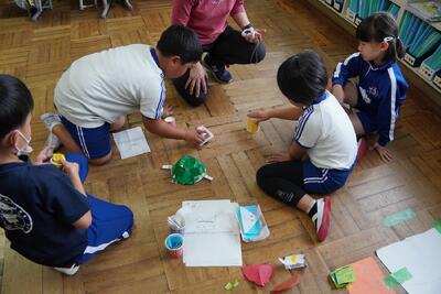 ことで、子どもたちの読書意欲が高まります。そこに、きれいな折り紙や写真などの色とりどりの工夫を加えることで、子どもたちの興味・関心がさらに高まっていきます。