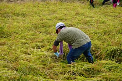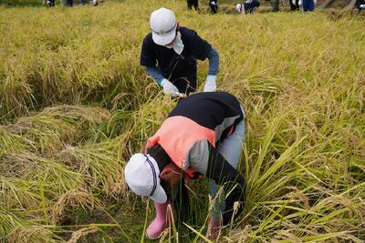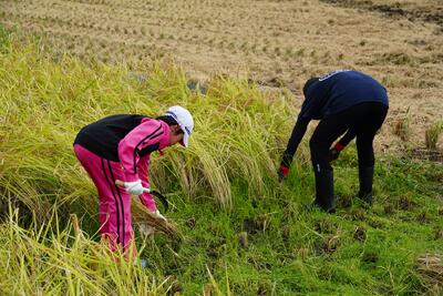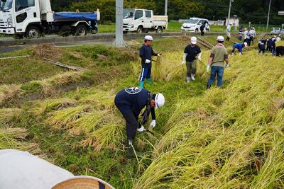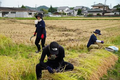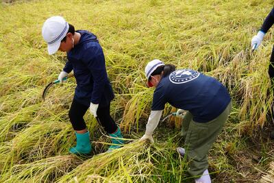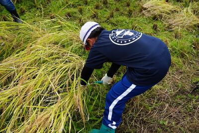 応援団の皆様から、鎌の使い方や、刈ったの束ね方などを教えてもらって、いよいよ活動開始。