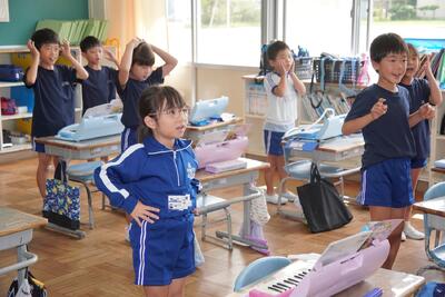 その歌声の先に行ってみると、1年生が音楽科の学習をしていました。