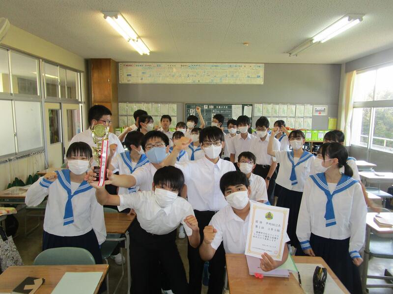 今回は、3年3組、2年2組、1年2組がトロフィーを勝ち取りました。おめでとうございます。さて、次回はどのクラスにトロフィーが!