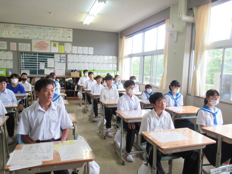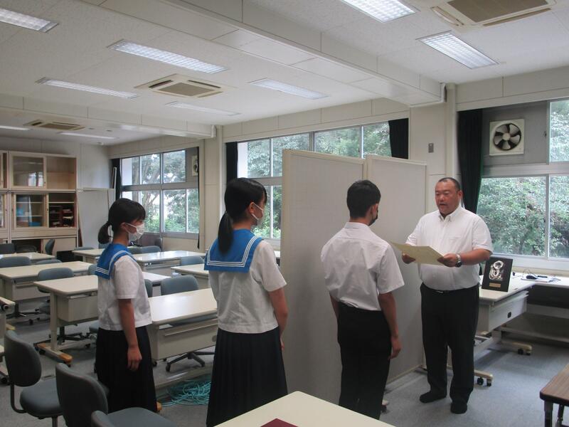 2023年7月20日 10時57分本日、1学期の終業式を行いました。終業式に先立って、県吹奏楽コンクール進出を決めた吹奏楽部の表彰を行いました。今週末には、中体連の県大会も開催されます。上位大会に出場する皆さんの活躍をお祈りします。