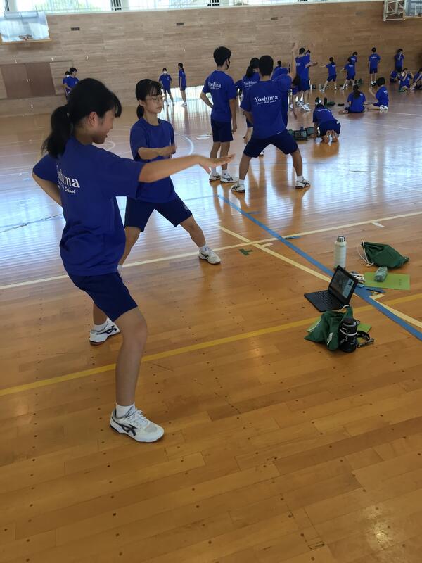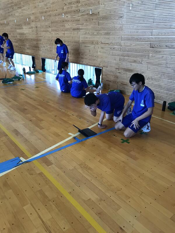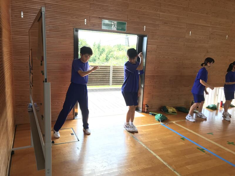 全員で動きを確認した後、班ごとにタブレットで動画を見ながら個人でも練習しました。
