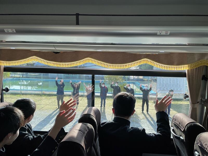 出発式を終えて、いよいよ修学旅行スタートです! 先生方、お見送りありがとうございます!
