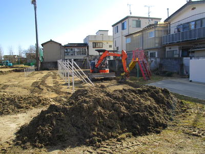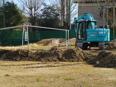 1月20日(月)今日の校庭工事の様子です。今日から重機が入り、表土をかきとる作業を始めました。