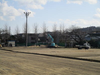 1月21日(火)天気もよく校庭工事が着々と進んでいます。昨日は重機2台でしたが、今日は3台に増え、作業がはかどっているように感じました。