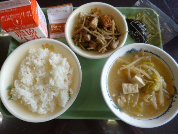 メニュー ごはん かつおひじき煮 五目きんぴら どさんこ汁