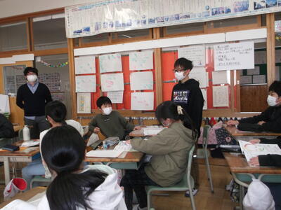 2022年3月11日 16時06分担任とALTとの最後の授業は、今まで習った文章のまとめを英語で答えるクイズ形式でした。