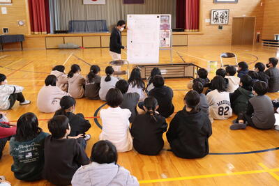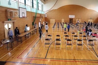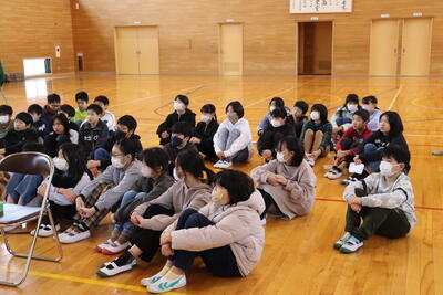 5年生が、卒業式の式場作成を行いました。自分たちも参加する卒業式、その会場作りです。はじめに作業の手順や気をつけることについて説明がありました。真剣に聞いている姿に頼もしさを感じます。お互い声を掛け合い、協力し合って会場を作成することができました。