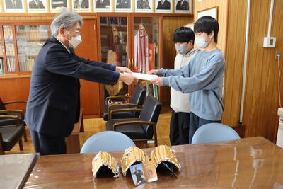 2024年3月11日 17時40分本日メジャーリーガーの大谷翔平選手から届いたグローブを紹介しました。代表の6年生にたくさん使ってほしいと手渡しました。