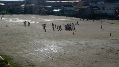 まだ校庭は乾ききっていませんが、1年生が持久走の練習をしていました。