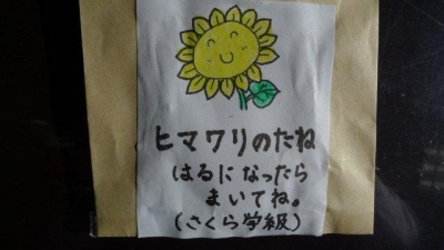 きっとこの袋には ひまわりの種と一緒に さくら学級のみんなのやさしい気持ちと頑張る気持ちがいっぱいつまっています。来年の夏は 好間の町中でひまわりが咲くといいな…