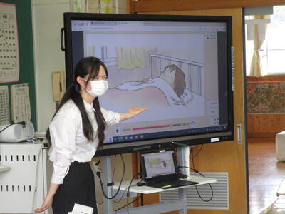 道徳科の授業です。教材文の主人公は、進級祝いにもらった目覚まし時計を契機に「わたしのきまり」をつくりますが、徐々に守れなくなっていきます。とうとう寝不足から気分が悪くなってしまい・・・。