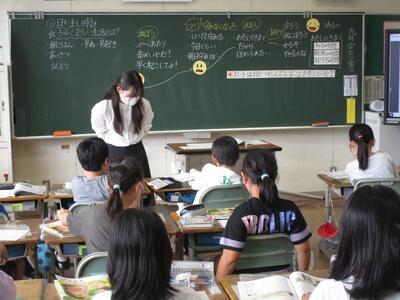 道徳科の授業です。教材の登場人物の判断、心情を自分との関わりで考えていく3年生です。雨もやんで雲の隙間に青空も見える休み時間、どうして校庭で遊んではいけないのか。みんな外に出ているから自分たちもよいのではないか。道徳科の見方・考え方を働かせて考えていきます。