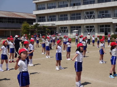 今日の運動会の全体練習は、入場行進・ラジオ体操・応援合戦です。