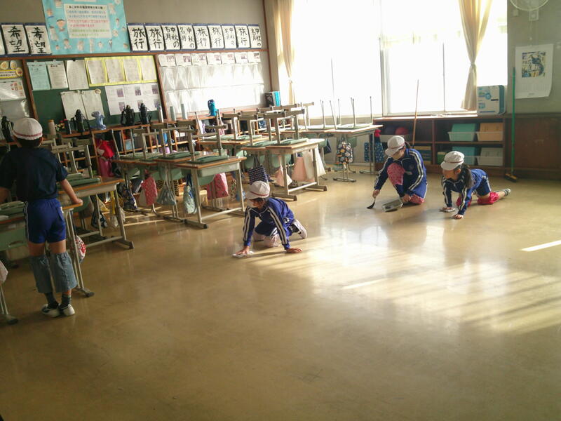 児童数が減少し、一つの場所を少ない人数で清掃しています。