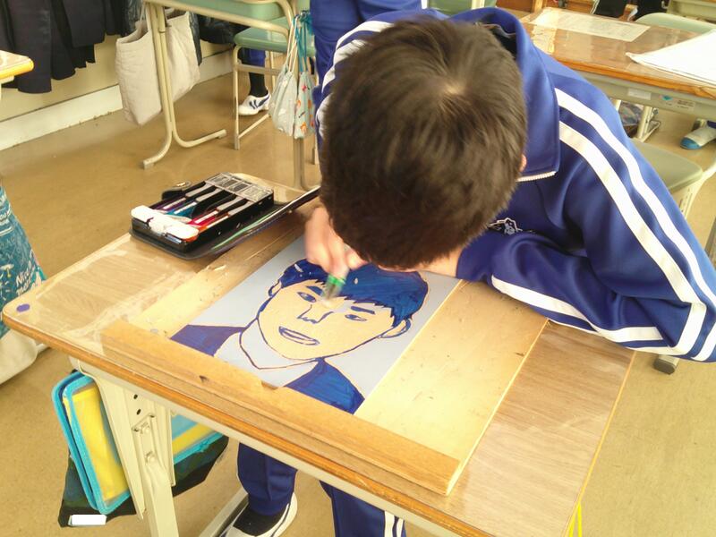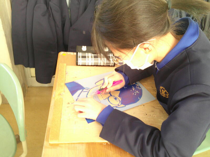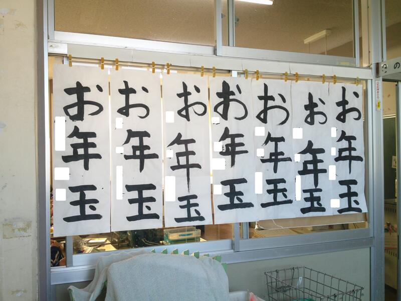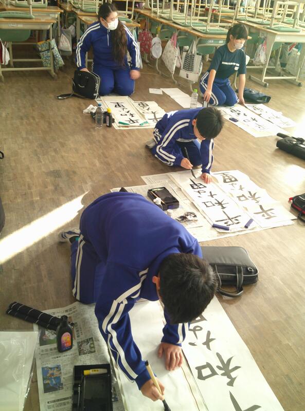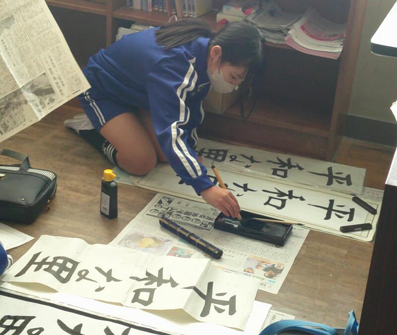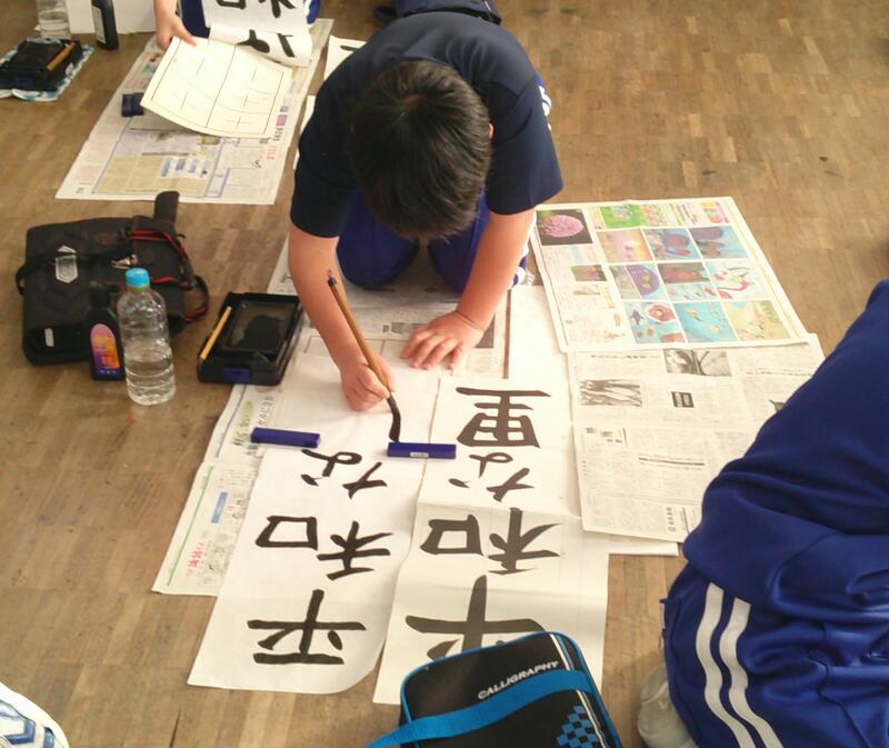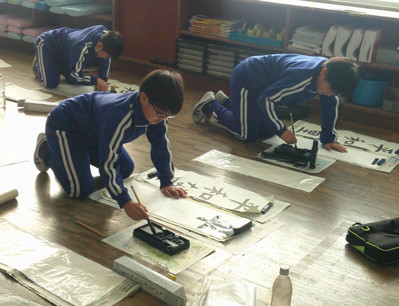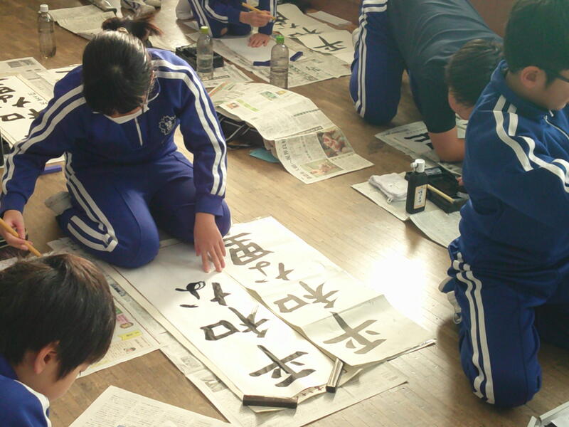 1・2年生はフェルトペンで、3年生以上は毛筆で取り組んでいます。
