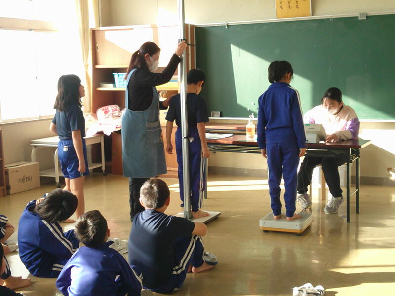 学期初めなので、全校児童の発育測定(身長と体重)も行っています。