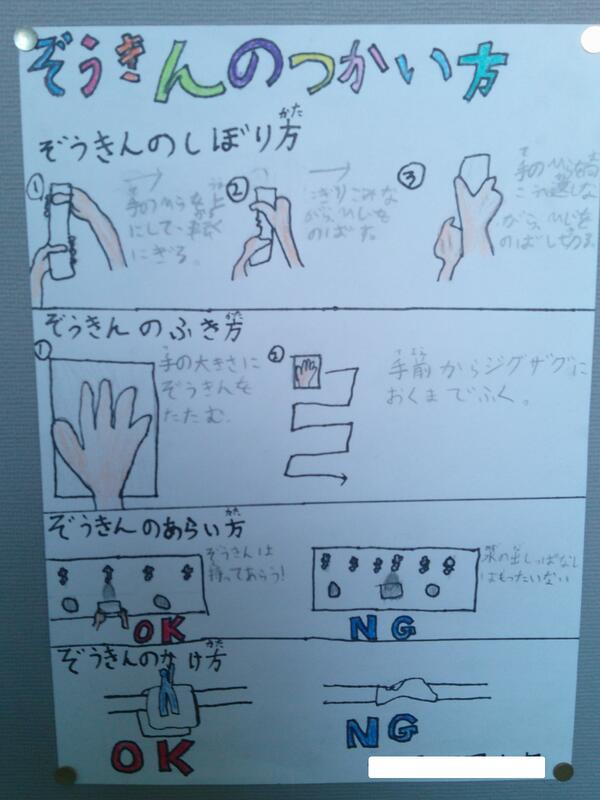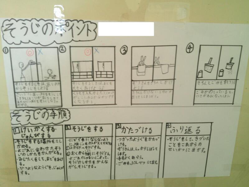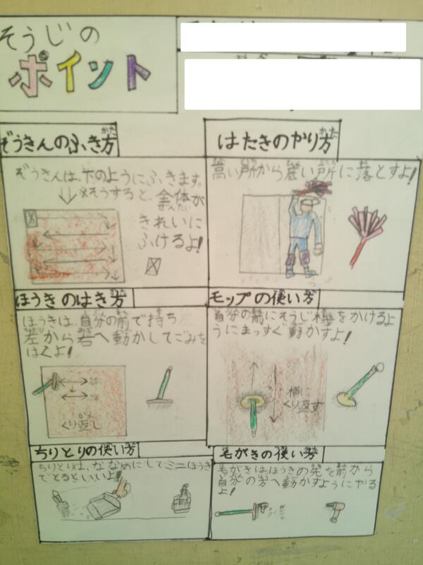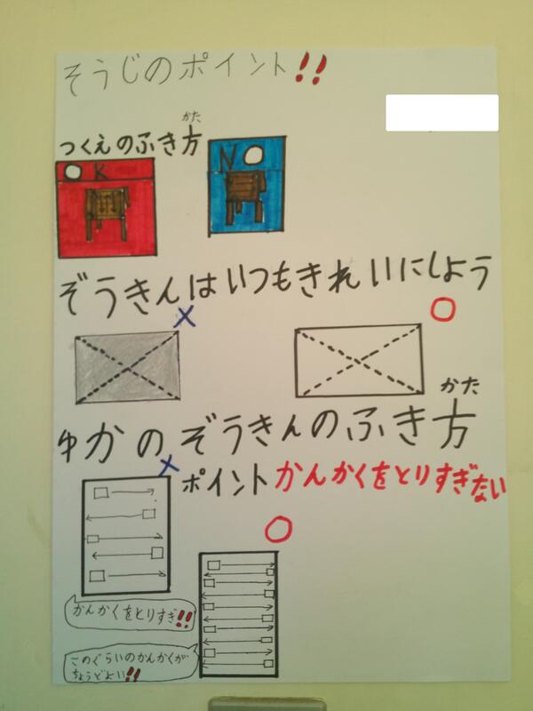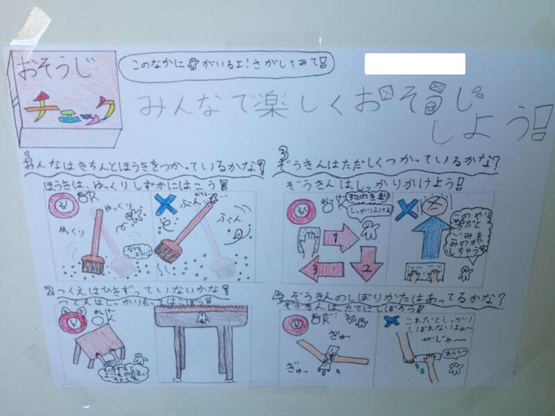 5年生が、家庭科で住みやすさの学習をしたので、そのことを生かして全校生にお掃除の仕方などのポイントを伝えようと作製したそうです。