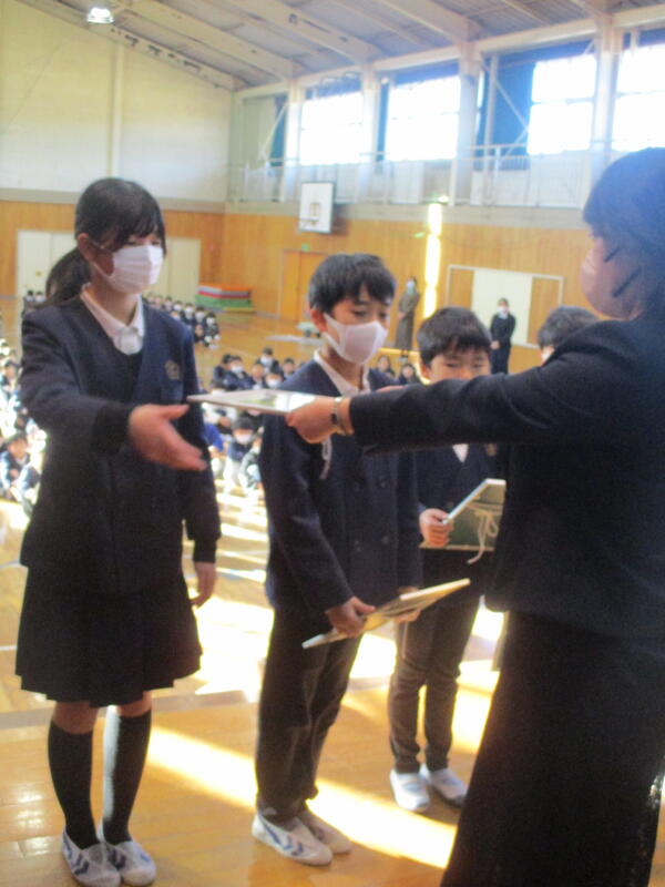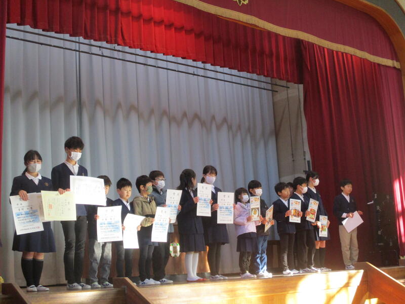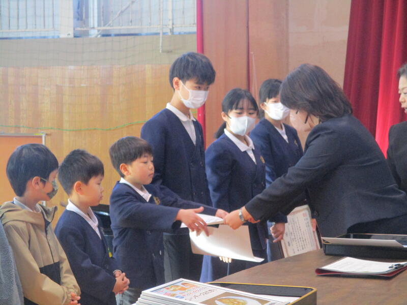 各種コンクールで受賞した子ども達に賞状を伝達しました。
