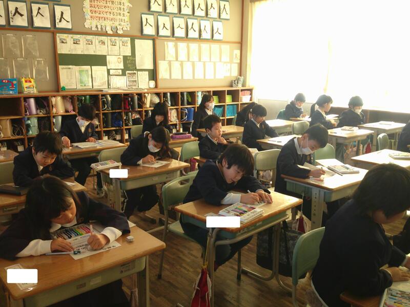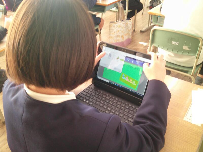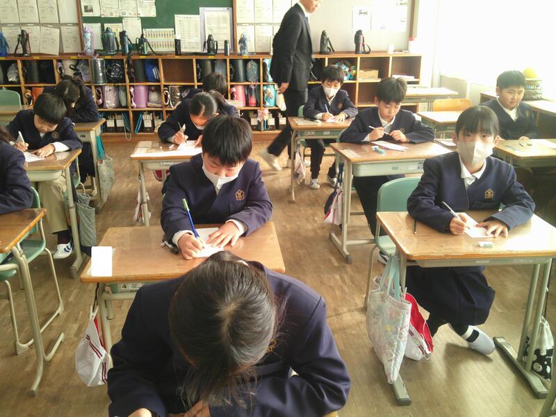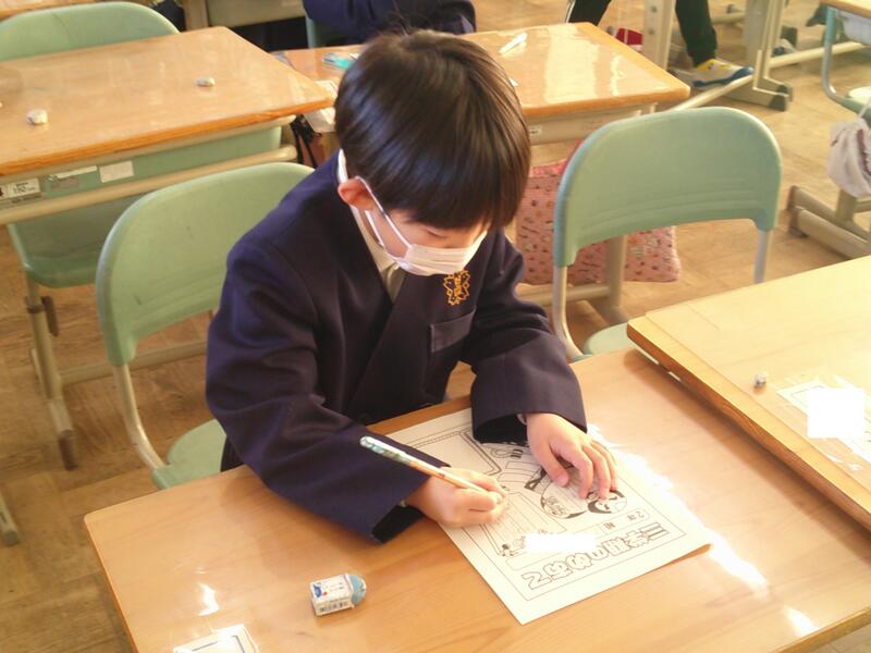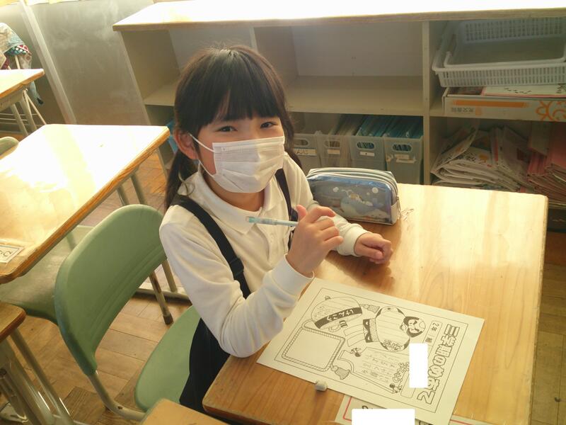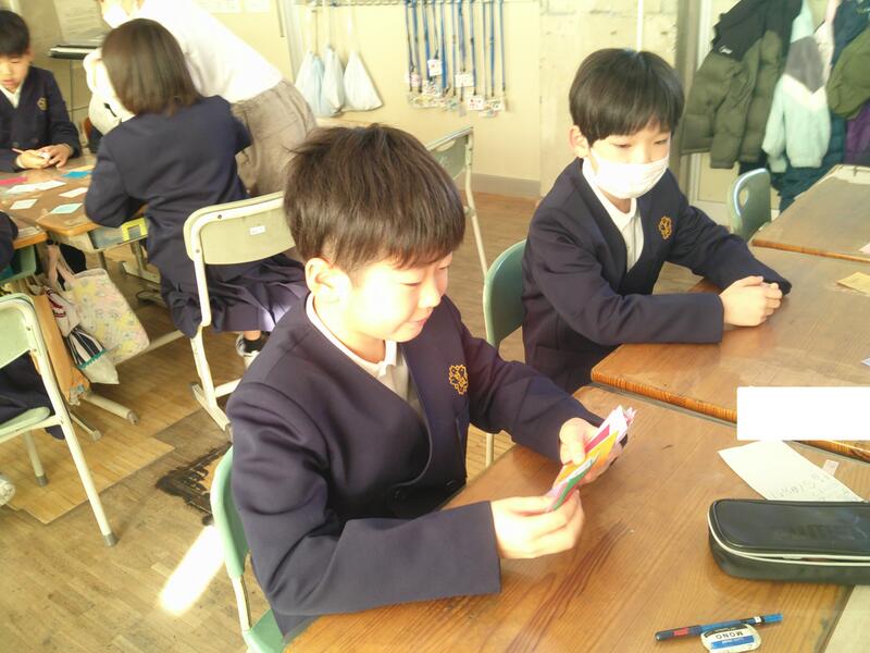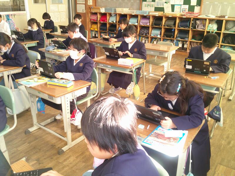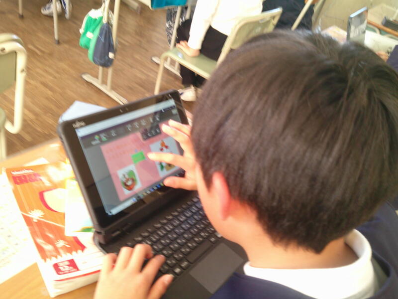 4年生は、タブレットを使って、3学期のめあてや新年の抱負を盛り込んだカードを作成していました。