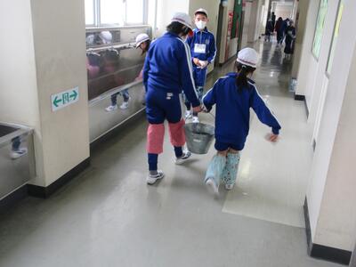 2023年12月6日 13時43分今日からふれあい班清掃の清掃場所が変わりました。やはり清掃場所や内容が変わっても一生懸命な子ども達です。