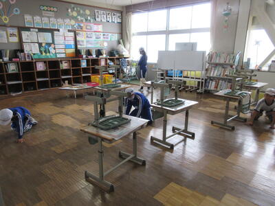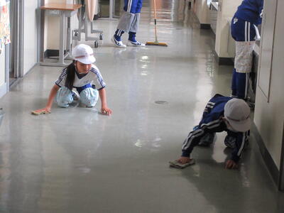 今日からふれあい班清掃の清掃場所が変わりました。やはり清掃場所や内容が変わっても一生懸命な子ども達です。