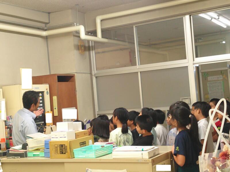 3年生は学校の消防設備を学習中。教頭先生に教えていただいていました。