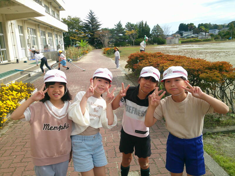 高学年の子ども達は、清掃の時間に明日の準備や校庭の石拾い等をしました。