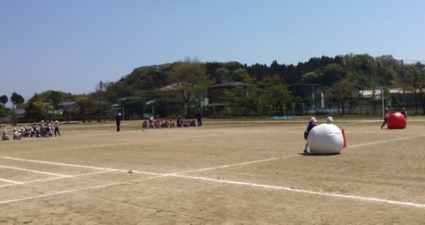 1年生が「玉入れ」、2年生が「大玉ころがし」の練習を行いました。