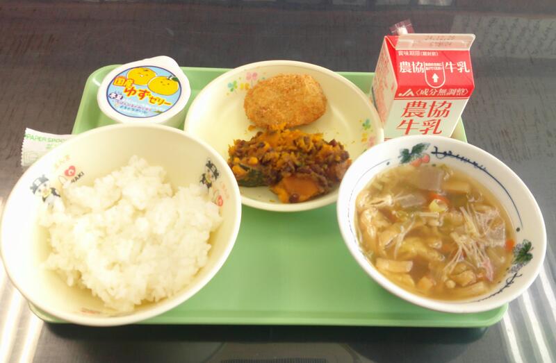 今日の給食には「冬至カボチャ」「ゆずゼリー」がでました。