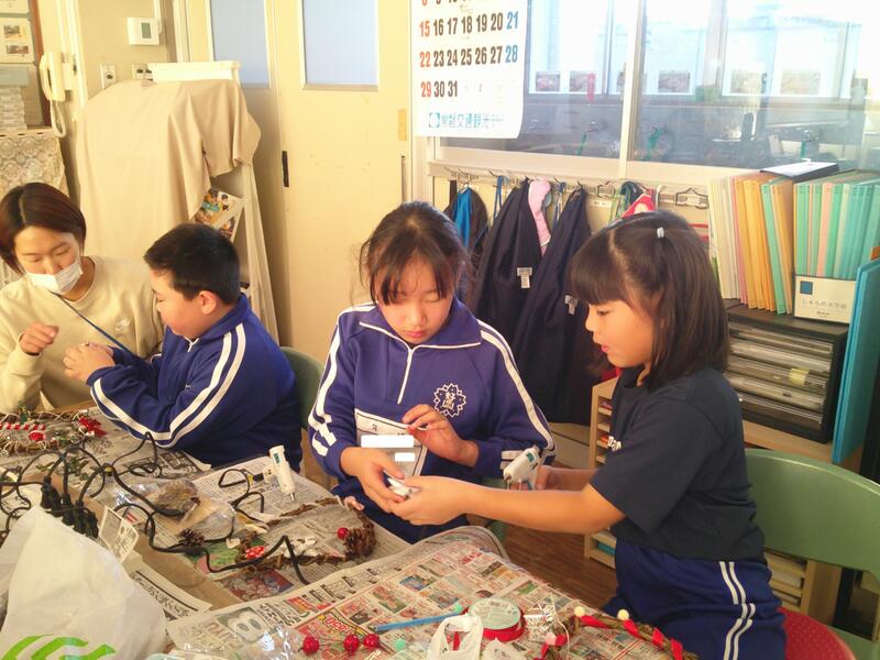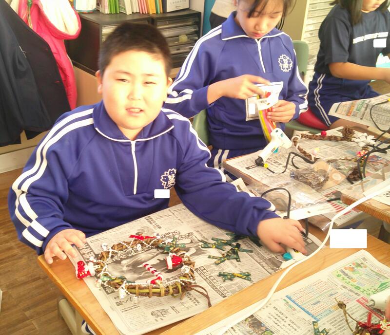 昨日季節感のことを書きましたが、今日はしゃらの木学級の子ども達がクリスマスリース作りに取り組んでいました。