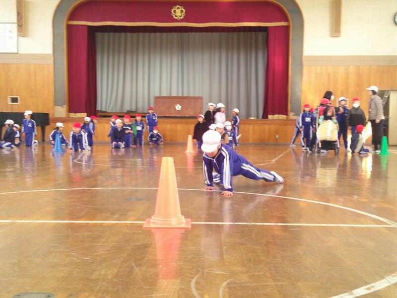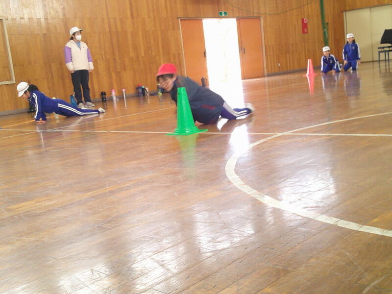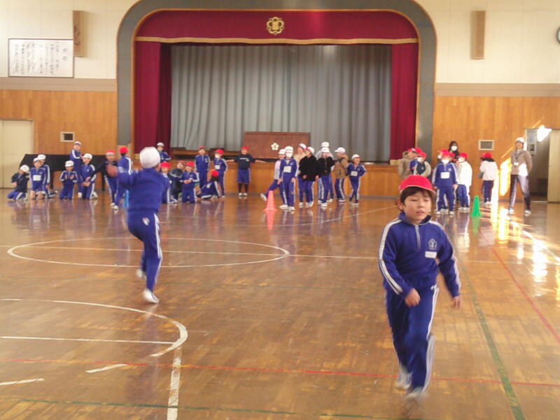 スキップやアザラシなど、いろいろな動きでリレーをします。
