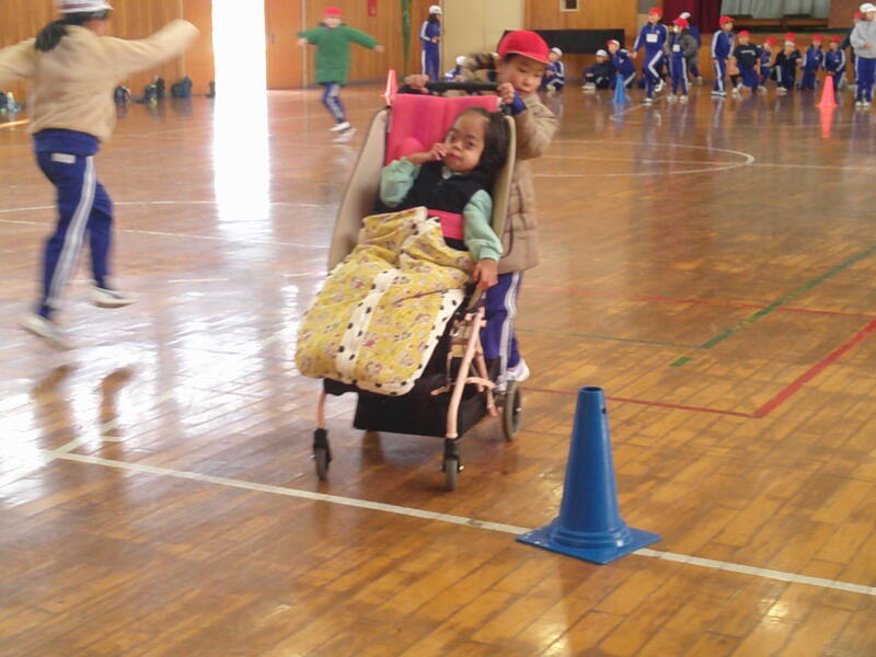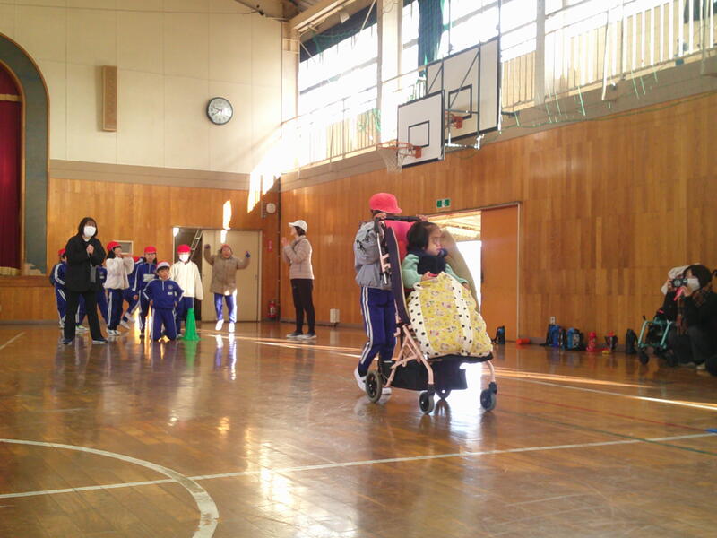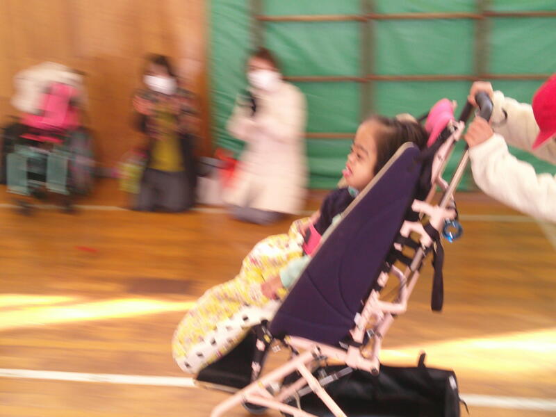 今日初めてだったのは、子ども達がバギーを押して一緒に運動したこと。
