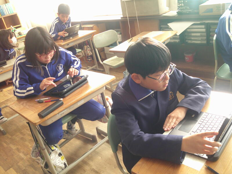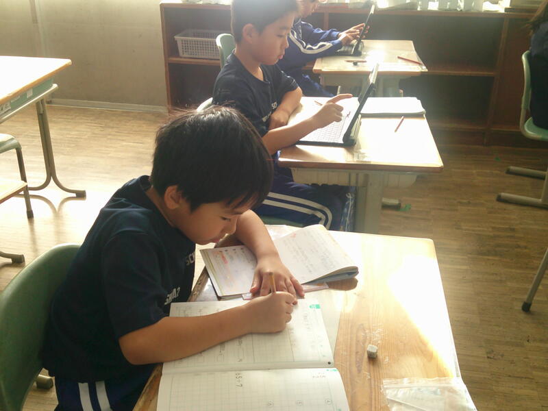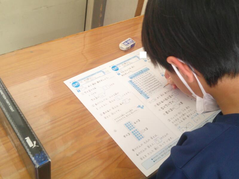 3年生は、教科書、ドリル、タブレットで復習です。