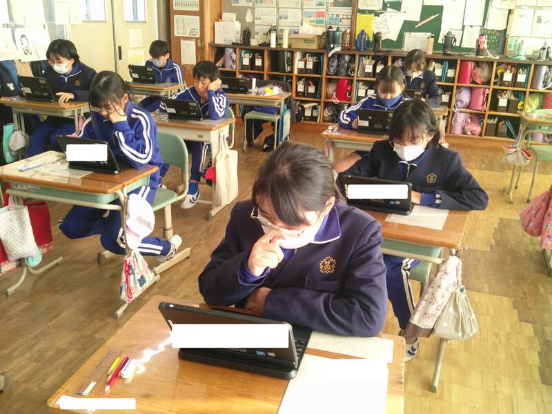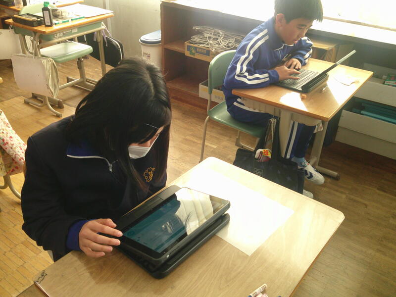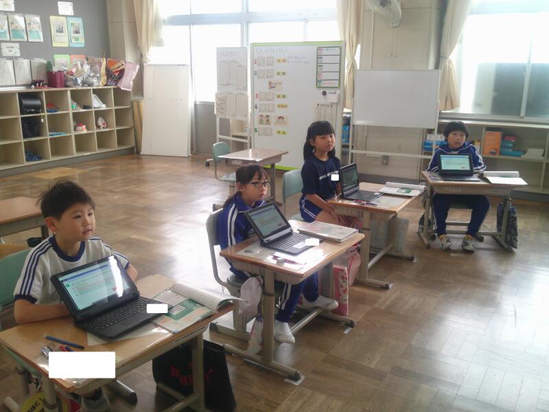 子ども達のタブレットが、先生の方を向いています。