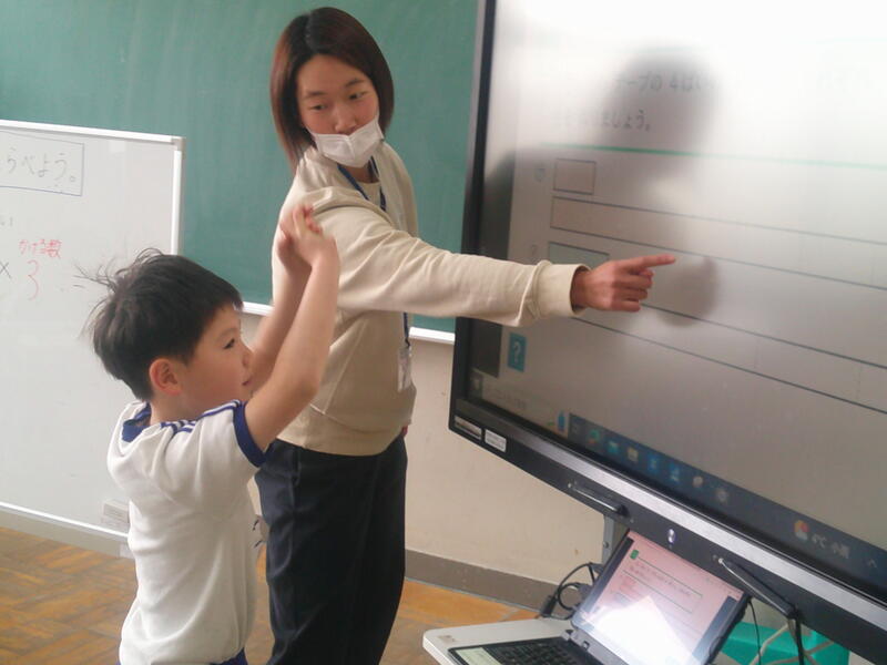 くり上がりやくり下がりのある計算にも、苦手意識を持たないで取り組んでほしいと、先生は工夫して授業を進めています。