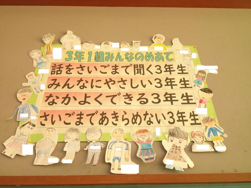 教室の後ろに、みんなで考えた学級のめあてが掲示されています。