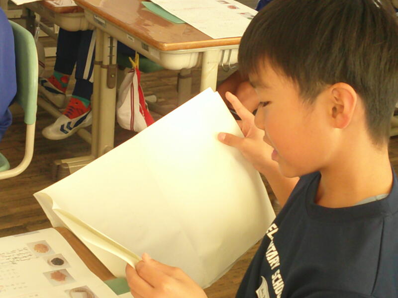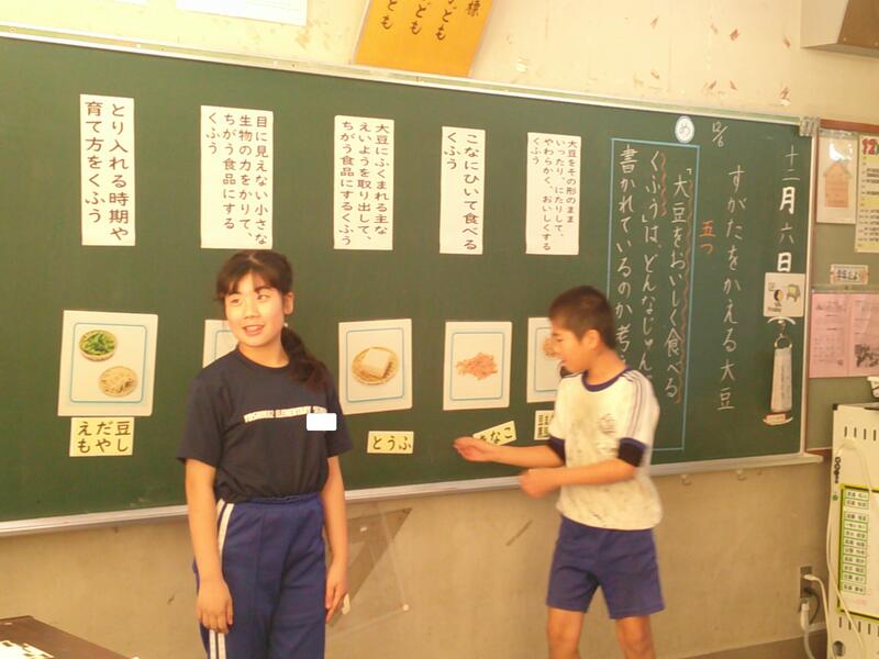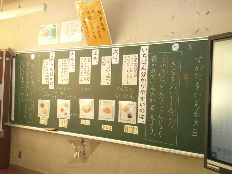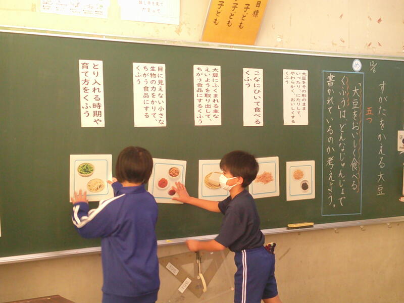 先生が「『大豆』と『ダイズ』はどうちがうのかな」と聞くと、子どもたちが、パッと机の中からプリントを取り出しました。