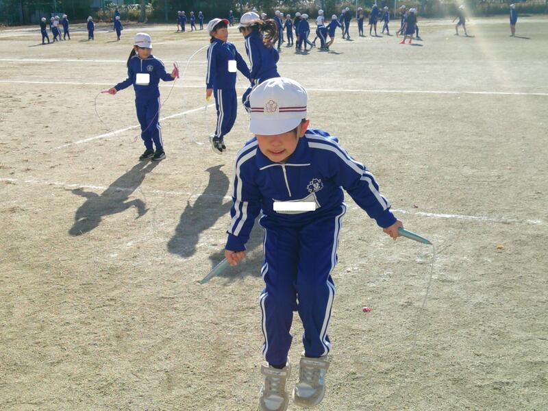 跳び縄が手足に当たって「いたっ!」と言いながらも、楽しそうに跳んでいました。