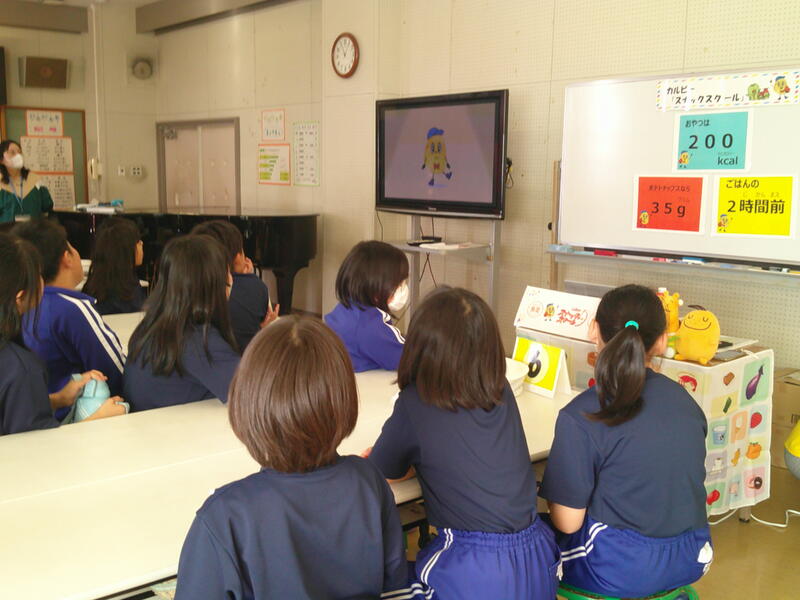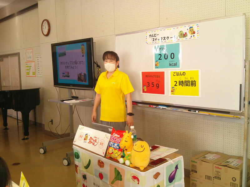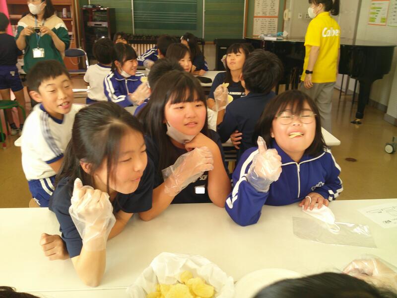 カルビー株式会社のフードコミュニケーションチームから、高野先生にお越しいただき、「カルビースナックスクール出張授業」を行いました。