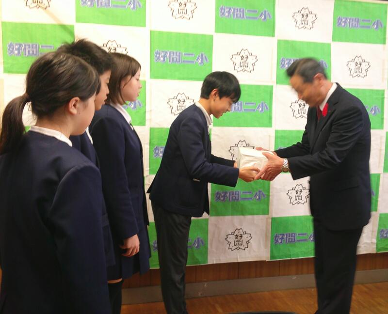 6年生の代表委員から、どうぞ役立ててくださいと挨拶がありました。
