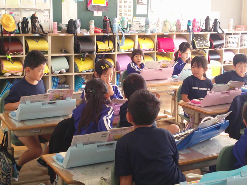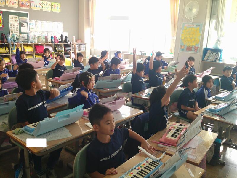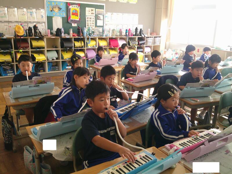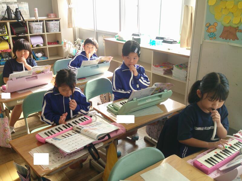1年生は、音楽で鍵盤ハーモニカの学習。
